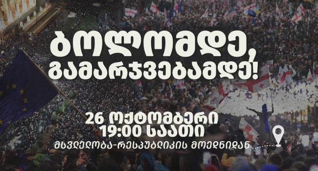 “ბოლომდე, გამარჯვებამდე”- ამ ლოზუნგით 26 ოქტომბერს თბილისში მსვლელობა დაანონსდა.
