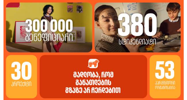 30 საგანმანათლებლო პროექტი, 53 პარტნიორი ორგანიზაცია, 300 000-ზე მეტი ბენეფიციარი – ეს საქართველოს ბანკის მიერ 2025 წელს განხორციელებული პროექტების და მათი მასშტაბების მხოლოდ ნაწილია. საქართველოს ბანკი, როგორც განათლების მთავარი მხარდამჭერი, მიზანდასახული ადამიანებისთვის შესაძლებლობების შექმნას განაგრძობს.