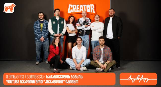 საქართველოს ბანკი ქართველი კრეატორების მხარდასაჭერად პირველ, მასშტაბურ YouTube რეალითი შოუს “კრეატორს” ახორციელებს. ინიციატივის მიზანი, საქართველოში YouTube სივრცის განვითარების ხელშეწყობა, ეკოსისტემის გაძლიერება და კონტენტ კრეატორების მხარდაჭერაა.