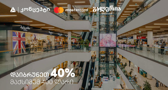9 სექტემბერს გალერია თბილისში დაიბრუნეთ 40% – შეთავაზება თიბისი კონცეპტ Mastercard სადებეტო ბარათებზე