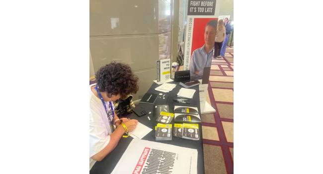 ჩვენ გვაქვს კუთე, რომელიც არის პირდაპირ შემოსასვლელში. ყველა ადამიანი, ვინც მოდის დღეს ღონისძიებაზე, პირველ რიგში ხვდება მზიას, რომელიც ეუბნება „იბრძოლე სანამ გვიან არ არის“ და ჩვენს სივრცესთან ამ ადამიანს შეუძლია რამდენიმე ფორმით დაუჭიროს მხარი და მოითხოვოს მზიას თავისუფლება. პირველი და ყველაზე მნიშვნელოვანი – შეუძლია მიწეროს წერილი მზიას, რომელსაც ჩვენ მას შევუგზავნით და მეორე – შეუძლია დაეხმაროს 22 დამოუკიდებელ მედიას „სინათლე არ უნდა ჩაქრეს“ კამპანიის ფარგლებში. წარმოდგენილი გვაქვს QR კოდი, რომელსაც ასკანერებენ მხარდაჭერის და დონაციის მსურველი ადამიანები, თანხას რიცხავენ […]