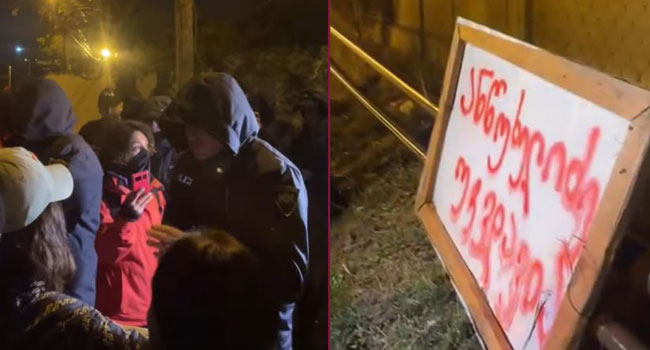 წულუკიანს საცხოვრებელთან მოქალაქეებმა დატოვეს ბანერი წარწერით – “ანწუხელიძე უკვდავია”.
