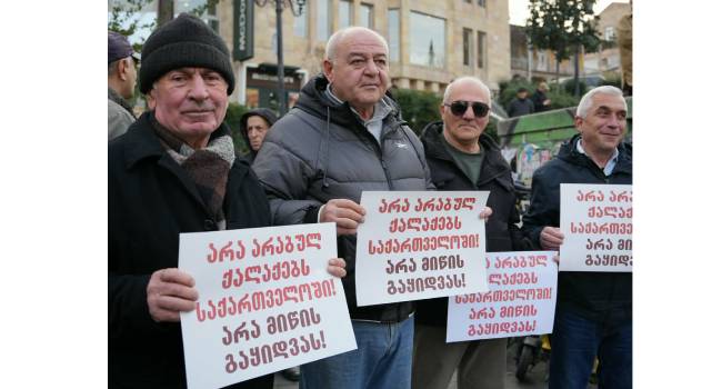 აქციაზე შეკრებილები “იგლ ჰილსის” პროექტს აპროტესტებდნენ.