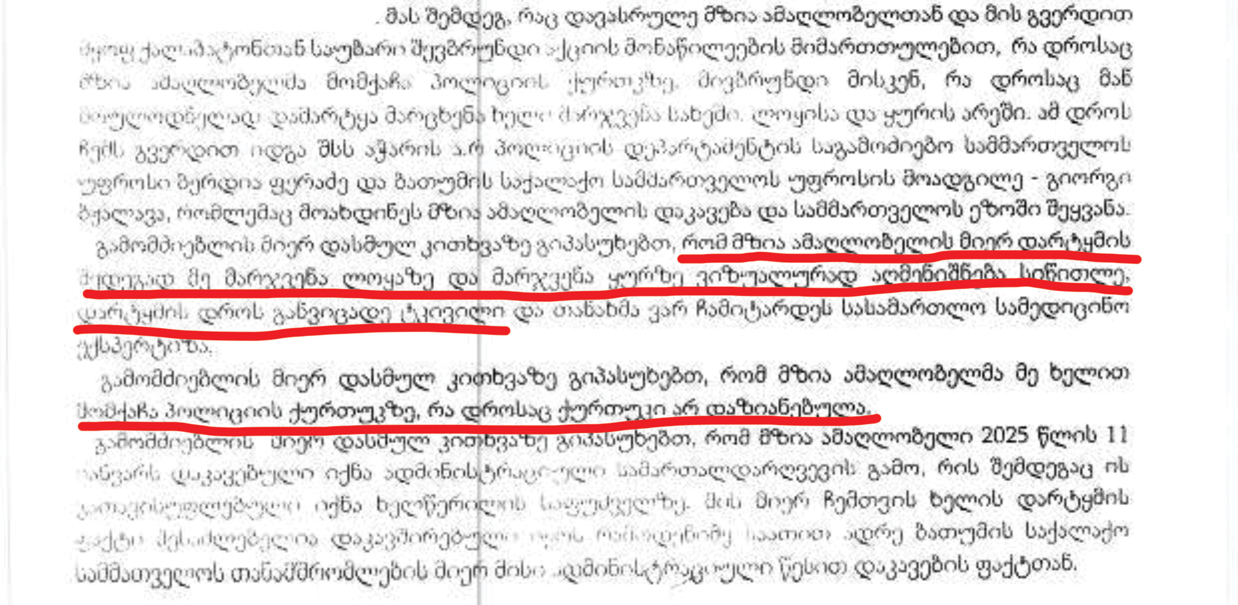 აქვე გთავაზობთ ამონარიდს ირაკლი დგებუაძის ჩვენებიდან, სადაც ის “ლოყის სიწითლესა” და “ტკივილის განცდაზე” საუბრობს.