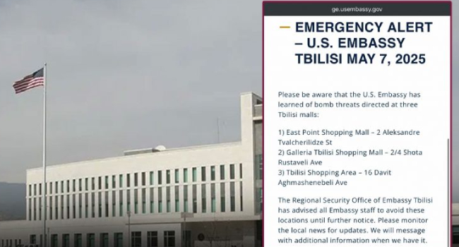 “გთხოვთ, გაითვალისწინოთ, რომ აშშ-ის საელჩომ შეიტყო თბილისის სამ სავაჭრო ცენტრში ბომბის მუქარის შესახებ: