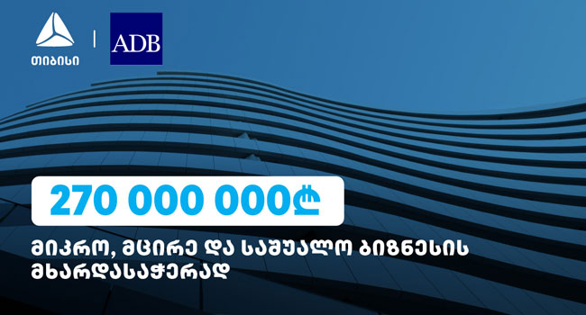 თიბისიმ აზიის განვითარების ბანკისგან 270 მლნ ლარის ფინანსური რესურსი მოიზიდა, რომელიც საქართველოში, მიკრო, მცირე და საშუალო ბიზნესებისთვის (MSME) ფინანსებზე ხელმისაწვდომობის ზრდას და მწვანე დაფინანსების გაძლიერებას მოხმარდება.
