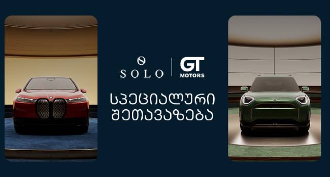 SOLO-სა და GT Motors-ის ერთობლივი ექსკლუზიური შეთავაზება დაიწყო, რომლის ფარგლებშიც SOLO მომხმარებლებს შესაძლებლობა აქვთ, წამყვანი საავტომობილო ბრენდების უახლესი მოდელები უპრეცედენტო ფასდაკლებით შეიძინონ. შეთავაზება მოიცავს BMW-სა და MINI-ს ავტომობილებს, რომლებიც GT Motors-ის შოურუმებშია წარმოდგენილი.