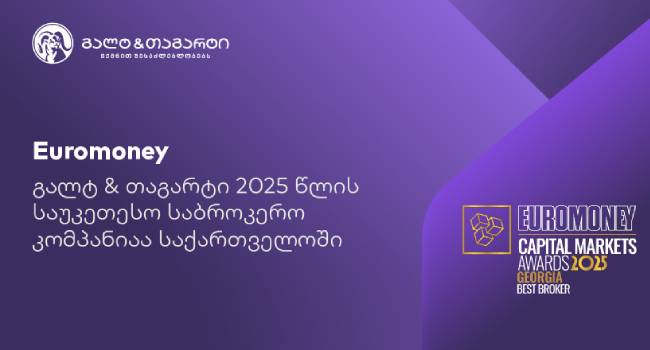 ინფორმაციისთვის, ფინანსურმა გამოცემა Euromoney-მ წელს გალტ & თაგარტს კიდევ ერთი, 2025 წლის საუკეთესო საინვესტიციო ბანკის ჯილდო გადასცა.