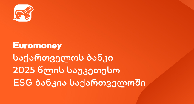 საერთაშორისო გამოცემა Euromoney-ს ყოველწლიური Awards for Excellence-ის ფარგლებში, საქართველოს ბანკი 2025 წლის საუკეთესო ESG ბანკად დასახელდა საქართველოში.