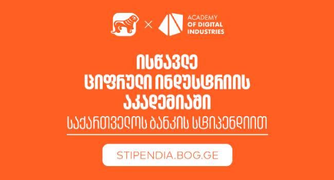საქართველოს ბანკის ახალი სასტიპენდიო პროგრამის ფარგლებში, აპლიკაციების მიღება 15 ოქტომბრამდე მიმდინარეობს. პროექტის შესახებ დეტალური ინფორმაციის მისაღებად ეწვიეთ ვებგვერდს: stipendia.bog.ge