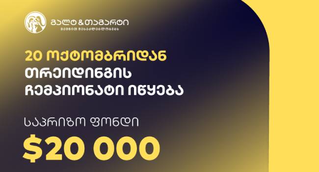 Galt & Taggart საფონდო ბირჟებზე ვაჭრობით დაინტერესებული ადამიანებისთვის ახალ პროექტს, თრეიდინგის ჩემპიონატს იწყებს. ჩემპიონატი მონაწილეებს შესაძლებლობას აძლევს, საფონდო ბირჟაზე საკუთარი ცოდნა და სტრატეგიები გამოსცადონ. ჩემპიონატი გალტ & თაგარტის სავაჭრო პლატფორმაზე GTtrader.ge-ზე გაიმართება და 20 ოქტომბრიდან 22 ნოემბრამდე გაგრძელდება.