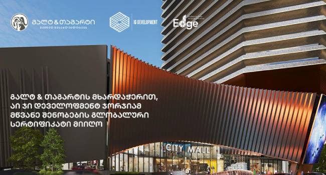 საინვესტიციო კომპანია გალტ & თაგარტი პარტნიორი ბიზნესების მხარდაჭერას განაგრძობს. ამჯერად, საინვესტიციო ბანკის ჩართულობით, აი ჯი დეველოფმენტ ჯორჯიამ მწვანე შენობების გლობალური სერტიფიკატი EDGE (Excellence in Design for Greater Efficiencies) მიიღო.