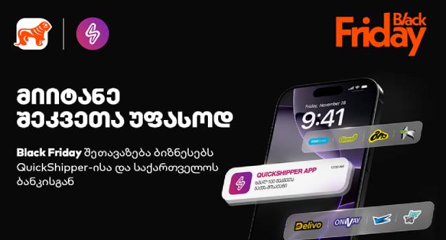 შავი პარასკევის პერიოდში, რომელსაც მომხმარებელთა გამორჩეულად მაღალი აქტიურობა ახასიათებს, ლოჯისტიკური პროცესების შეუფერხებელი მართვა ბიზნესებისთვის პრიორიტეტული ხდება. გაზრდილი შეკვეთების ფონზე, ოპერაციების ოპტიმიზებისთვის, QuickShipper-მა და საქართველოს ბანკმა ბიზნესებისთვის შეთავაზება მოამზადეს.