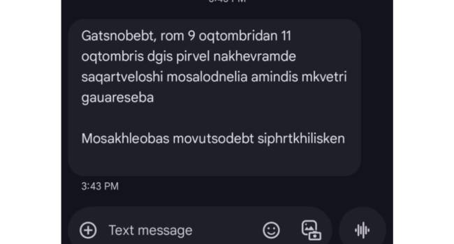 საზოგადოებრივი უსაფრთხოების მართვის ცენტრი (112) მოქალაქეებს სმს შეტყობინებებით აფრთხილებს.