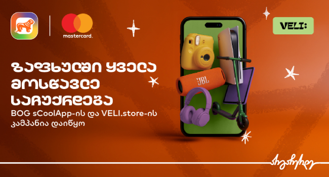 მოსწავლეების საყვარელ საბანკო აპლიკაცია sCoolApp-ში ზაფხულის საჩუქრების კამპანია დაიწყო. კამპანიის ფარგლებში, მოსწავლეები, რომლებიც აპლიკაციაში 3 მეგობარს მოიწვევენ, 1500-მდე საჩუქრიდან ერთ-ერთს მიიღებენ, მათ შორის: PlayStation, პლანშეტი, LEGO, ველოსიპედი და სხვა. საჩუქარს კი VELI.store-ის ვაუჩერის სახით მიიღებენ.