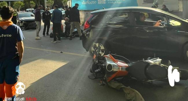 ერთმანეთს მოტოციკლი და მსუბუქი ავტომობილი შეეჯახა. ავარიის შესახებ ინფორმაციას გვერდი “ჩემი ქალაქი მკლავს” ავრცელებს.