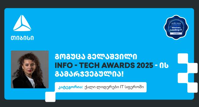 თიბისის პლატფორმული სისტემების ლიგის ლიდერი – გოგუცა გელაშვილი The Info-Tech Awards-ის გამარჯვებულია. მან ეს პრესტიჟული ჯილდო კატეგორიაში – ქალი ლიდერები IT სფეროში მიიღო.