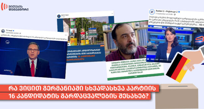5 სექტემბერს პროსახელისუფლებო სარედაქციო პოლიტიკის მქონე მედიასაშუალებებმა (POSTV, იმედი, Rustavi 2) და საინფორმაციო სააგენტოებმა (Newshub.ge, Georgia First NEWS, INFO9, მხარე • mkhare.ge, Exclusive News) გერმანიაში, ჩრდილოეთ რაინ-ვესტფალიაში ადგილობრივი არჩევნების წინ სხვადასხვა პარტიის 16 კანდიდატის გარდაცვალების შესახებ გაავრცელეს ინფორმაცია. მედიასაშუალებების ნაწილს გამოქვეყნებულ საინფორმაციო ბარათზე მხოლოდ გარდაცვალების შესახებ ცნობა აქვს დართული და პოსტს დეტალებისა და მიზეზების შესახებ დამატებით ინფორმაციას არ ურთავს.