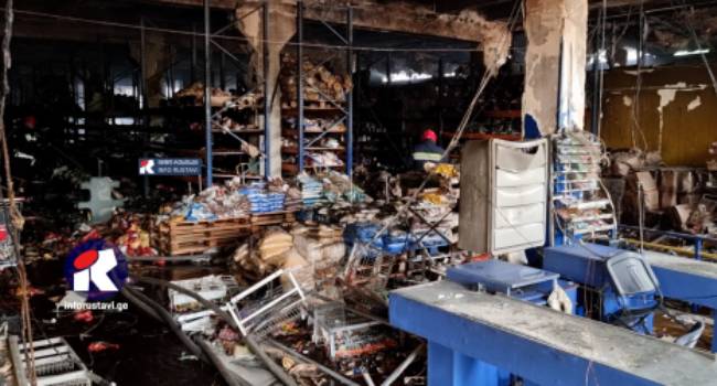 მთლიანად დამწვარია ქალაქში ყველაზე დიდი საბითუმო მაღაზია და განადგურებულია პროდუქტი, ასევე დაიწვა ბაზრობის ტერიტორიაც, დახლები და სხვადასხვა სახის პროდუქტი.