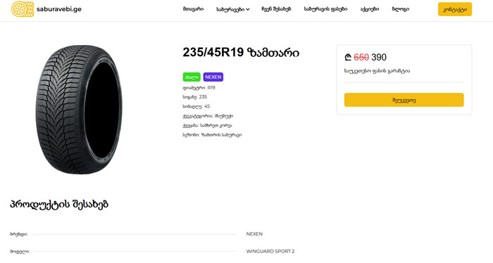 Saburavebi.ge-ზე საბურავების შეძენა მარტივი პროცესია, რომელიც რამდენიმე ეტაპისგან შედგება: