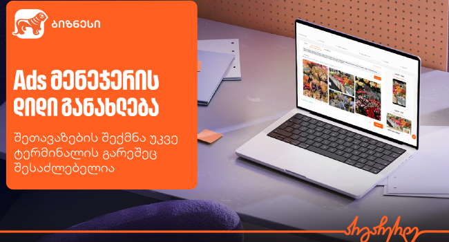ინფორმაციისთვის, Ads მენეჯერი ბიზნეს მომხმარებლებს შესაძლებლობას აძლევს, საქართველოს ბანკის 1 500 000-ზე მეტ ციფრულ მომხმარებელს საკუთარი პროდუქტი თუ სერვისი სრულიად უფასოდ გააცნოს და ამით გაყიდვები გაზარდოს.