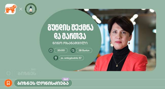 საქართველოს ბანკი განაგრძობს მცირე და საშუალო ბიზნესის გაძლიერებას და მხარდაჭერას. ამ მიზნით, ბანკი, აზროვნების აკადემიასთან პარტნიორობით, ბიზნეს სესიების ციკლს აგრძელებს. 28 მაისს, 20:00 საათზე, საქართველოს ბანკის მხარდაჭერით, აზროვნების აკადემია უმასპინძლებს მორიგ ღონისძიებას თემაზე — „გუნდის შექმნა და მართვა“, რომელსაც ნინო ოხანაშვილი გაუძღვება.