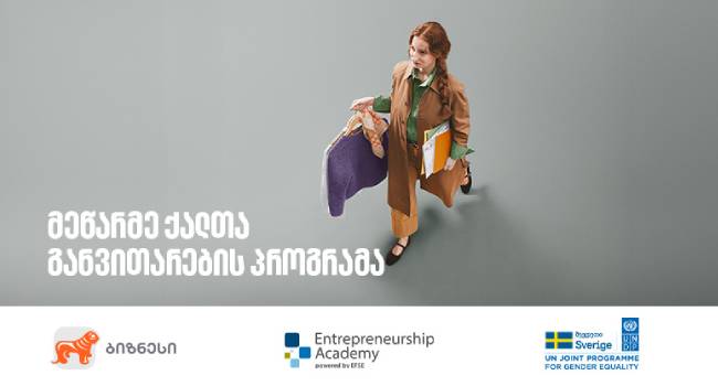 საქართველოს ბანკი, გაეროს განვითარების პროგრამის (UNDP), შვედეთის მთავრობისა და EFSE Entrepreneurship Academy-ის მხარდაჭერით, მეწარმე ქალთა განვითარების პროგრამას აგრძელებს. ამჯერად, პროგრამის მე-14 ნაკადის მიღება გამოცხადდა. მონაწილეები ინტენსიურ ვორკშოპებს 15-17 ოქტომბერს თბილისში, სასტუმრო Pullman-ში გაივლიან.