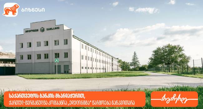 საქართველოს ბანკი რეგიონებში ბიზნესების მხარდაჭერას აქტიურად აგრძელებს. ამჯერად, ბანკის ფინანსური მხარდაჭერით, ქართულ-გერმანულმა კომპანია „ედელინგმა“ წარმოება განავითარა.