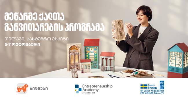 ინფორმაციისთვის, მეწარმე ქალთა განვითარების პროგრამა გაეროს განვითარების პროგრამასთან (UNDP) ერთად, შვედეთის მთავრობის მხარდაჭერითა და EFSE Entrepreneurship Academy-ის ჩართულობით უკვე არაერთი წელია მიმდინარეობს. პროგრამაში ასობით ქალმა მეწარმემ უკვე მიიღო მონაწილეობა.