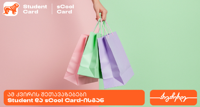 აღნიშნული შეთავაზებებით სარგებლობა შესაძლებელია მხოლოდ საქართველოს ბანკის sCool და Student card-ით გადახდისას.