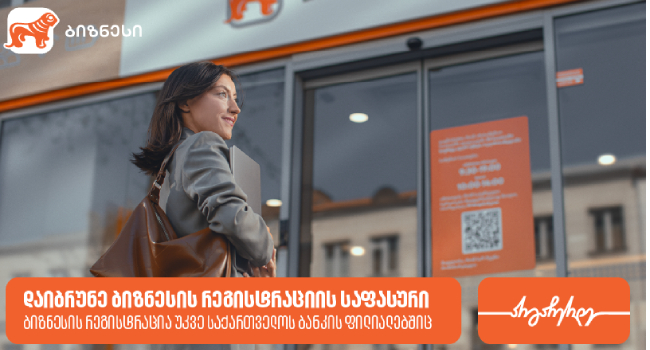 საქართველოს ბანკი ბიზნესის მხარდაჭერისა და სამეწარმეო საქმიანობის წახალისების მიზნით, მომხმარებლებს ახალ შესაძლებლობას სთავაზობს — ბანკის ფილიალში ბიზნესის სამეწარმეო რეესტრში რეგისტრაციის შემთხვევაში, ისინი მომსახურების სტანდარტულ საფასურს ნაწილობრივ ან სრულად დაიბრუნებენ.