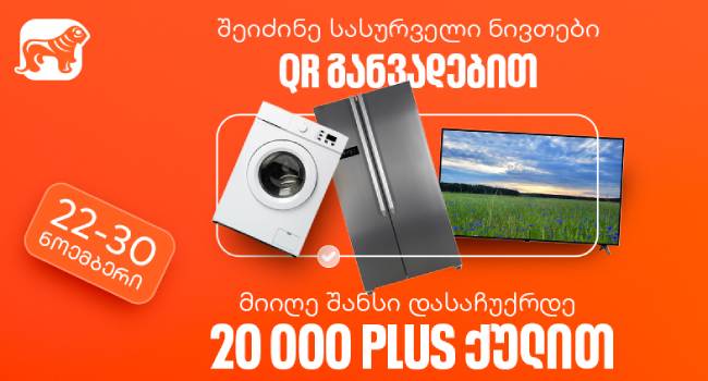 საქართველოს ბანკი შავი პარასკევის კვირეულის ფარგლებში მომხმარებლებს განსაკუთრებულ შეთავაზებას უკეთებს. 22 ნოემბრიდან 30 ნოემბრის ჩათვლით, ყოველი მე-5 მომხმარებელი, რომელიც QR განვადებით 1,000 ლარზე მეტი ღირებულების ნივთს შეიძენს, საჩუქრად 20,000 PLUS ქულას მიიღებს.