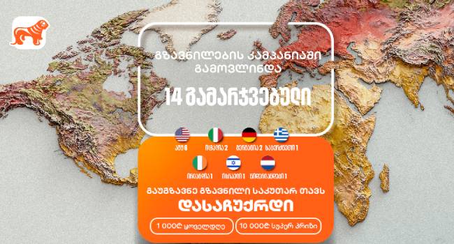 საკუთარ თავთან გზავნილის კამპანია ემიგრანტებს შესაძლებლობას აძლევს ყოველ დღე 1,000 ლარი, ხოლო 20 დეკემბერს სუპერ პრიზი – 10,000₾ მოიგონ.