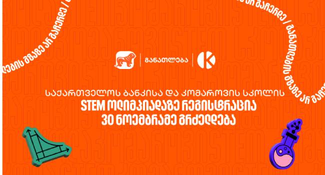 თუ ხარ VII-XI კლასის მოსწავლე, 30 ნოემბრის ჩათვლით, დარეგისტრირდი საქართველოს ბანკის და კომაროვის სკოლის STEM ოლიმპიადაზე, გამოავლინე შენი ცოდნა ფიზიკისა და მათემატიკის მიმართულებით და გაიმარჯვე.