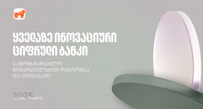 საერთაშორისო გამოცემა Global Finance-მა 2025 წლის „მსოფლიოს საუკეთესო ციფრული ბანკების“ დაჯილდოებაზე საქართველოს ბანკი სამომხმარებლო მიმართულებით როგორც ქვეყნის, ასევე ცენტრალური და აღმოსავლეთ ევროპის მასშტაბით ყველაზე ინოვაციურ ციფრულ ბანკად დაასახელა.