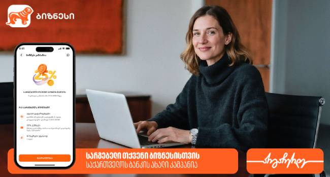 - 25%-იანი ქეშბექი Mastercard ბიზნეს ბარათზე, მაქსიმუმ 500 ლარამდე (ქეშბექი მოქმედებს კამპანიის პერიოდში შესრულებულ ტრანზაქციებზე).