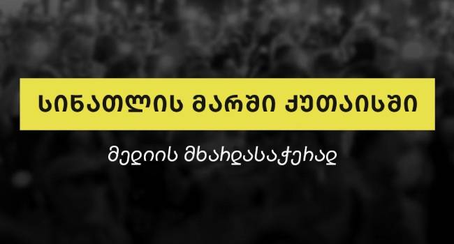 მედიის მხარდასაჭერად მარში ამჯერად ქუთაისში გაიმართება. აქციის მონაწილეები მერიის შენობასთან 20 საათზე შეიკრიბებიან