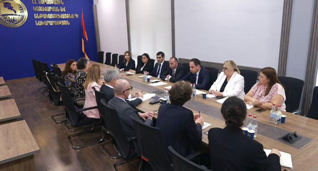 სომხეთის ტერიტორიული მართვისა და ინფრასტრუქტურის მინისტრი დავით ხუდათიანი შეხვდა ევროპის საინვესტიციო ბანკის აღმოსავლეთის საჯარო სექტორის გაფართოების და ევროკავშირის მეზობლობის საკრედიტო ოპერაციების განყოფილების ხელმძღვანელ მატეო რიველინის ხელმძღვანელობით ჩამოსულ დელეგაციას, _ იუწყება „არმენპრესი”