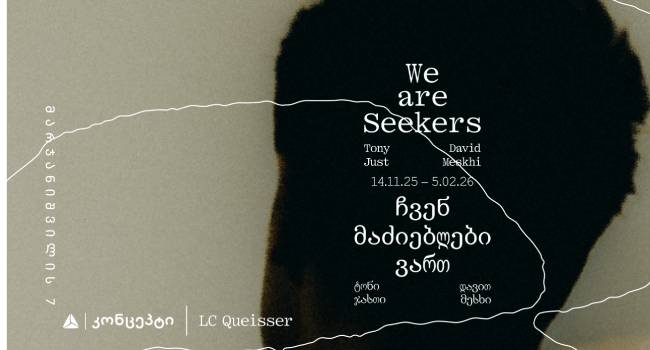 თიბისი კონცეპტის გალერეა 14 ნოემბერიდან გიწვევთ დავით მესხის და ტონი ჯასთის ერთობლივ გამოფენაზე „ჩვენ მაძიებლები ვართ“. გამოფენის კურატორია გალერეა „ელ ცე კვაისარ“.