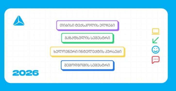 2026 წლის კიდევ ერთი სიახლე ხელოვნური ინტელექტის კურსია, რომელიც უფროსკლასელებს აძლევს შესაძლებლობას, დაეუფლონ მომავლის ერთ-ერთ ყველაზე მოთხოვნად უნარს და AI, იდეის შექმნიდან, მის ტექნიკურ განხორციელებამდე გამოიყენონ. კურსი პრაქტიკულ სწავლებაზეა დაფუძნებული და ვებ მენეჯმენტის, გრაფიკული დიზაინისა თუ AI პროგრამირების მიმართულებით მიღებული ცოდნის საფუძველზე, მოსწავლე კურსს რეალური ციფრული პროდუქტის შექმნით დაასრულებს.
