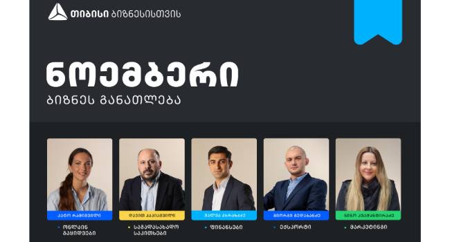 თიბისი ბიზნესის მხარდაჭერით, ნოემბერში, 5 სხვადასხვა თემატიკის ტრენინგი გაიმართება. ბიზნესების წარმომადგენლებს შესაძლებლობა ექნებათ, სფეროს ექსპერტებისგან მათთვის საინტერესო საკითხებზე მიიღონ ამომწურავი ინფორმაცია და მიღებული ცოდნით, საკუთარი ბიზნესის წარმატებას შეუწყონ ხელი.